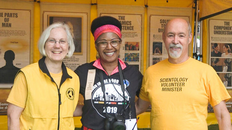 De Frivillige Hjelperne fra Scientology Kirken i Portland sluttet seg til andre samfunnsgrupper for å feire mangfoldighet på den tredagers «Good in the Hood»-festivalen ved King School Park i Portland.