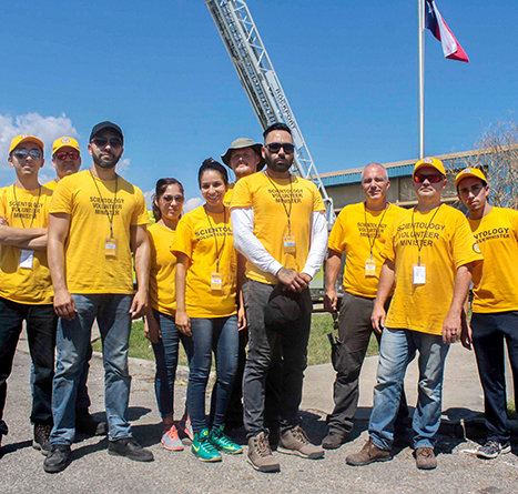 Han sa at han ble fortalt av folk i hæren at en gruppe mennesker fra Scientology Kirken kom med en haug med motorsager og bare begynte å sage trær. Etter opprydningen av veier begynte vi å arbeide med forsyningslinjer for mat og vann og gi assister.