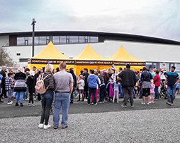 Franske frivillige presters gule telt rager i Paris for å bringe hjelp til alle og enhver.